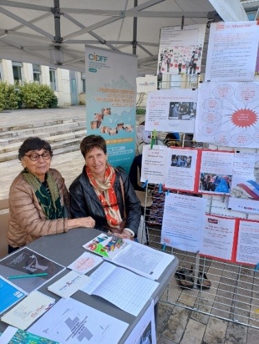 A Orléans ( Loiret), place de Gaulle, en centre-ville, Elles aussi CVL a installé un stand ( aux côtés du CIDFF 45) dans le « village militant » organisé par le Collectif féministe 45 . Danièle et Marie-Christine , responsable et trésorière de l’antenne, y ont représenté Elles aussi.