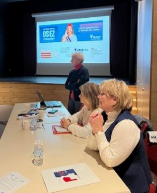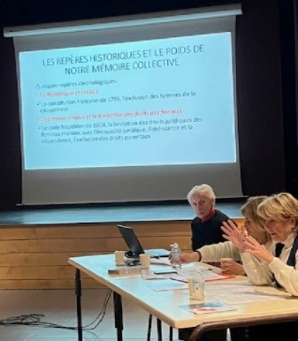 La réunion a débuté par un podcast d’elles aussi « En 2026 les femmes s’engagent » puis une intervention de Reine Lépinay co-présidente d’Elles aussi sur « la loi et la parité », une gestion locale partagée entre les femmes et les hommes. Un témoignage de deux femmes élues localement dans différentes fonctions à la municipalité, mais aussi à l’intercommunalité, a permis de comprendre la réalité du quotidien. Marie France Lambert, membre du Bureau exécutif d’Elles aussi a témoigné de son engagement municipal dans une municipalité urbaine de 18 000 habitants en tant qu’élue d’opposition et dans une municipalité rurale de l’Allier en tant que première adjointe.